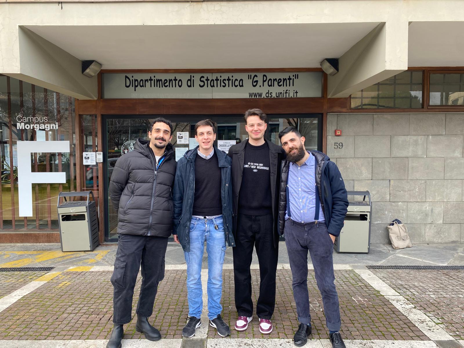 The University of Florence will participate in the Econometric Game 2025, organized by University of Amsterdam, which will take place in Amsterdam from April 9 to April 11, 2025. The Unifi team will consist of four students: two doctoral students in Statistics, one student of the MSc in Statistics and Data Science, and one student of the MSc in Economics and Development, Enrico Caricchio; Enrico is the rightmost person in this photo.